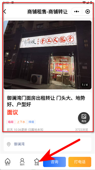 4、在商铺转让详情页,可点击收藏按钮,进行信息收藏操作。