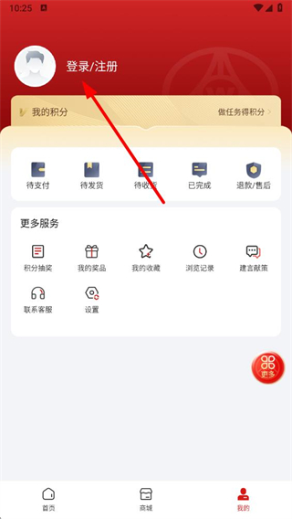 1、在五粮液家园app首页点击我的选项,进入个人页面。