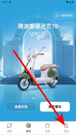 1、打开雅迪智行,点击底部导航栏的我的,进入个人中心页面。