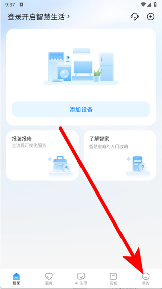 1、打开海尔智家,点击底部导航栏我的,进入个人中心页面。
