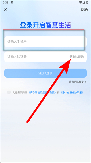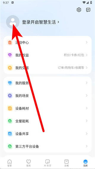 2、在个人中心页面,点击登录开启智慧生活区域,进入登录界面。