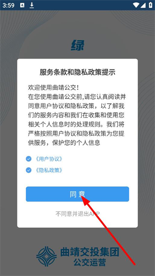 1、在服务条款和隐私政策提示弹窗中,点击同意,进入首页。