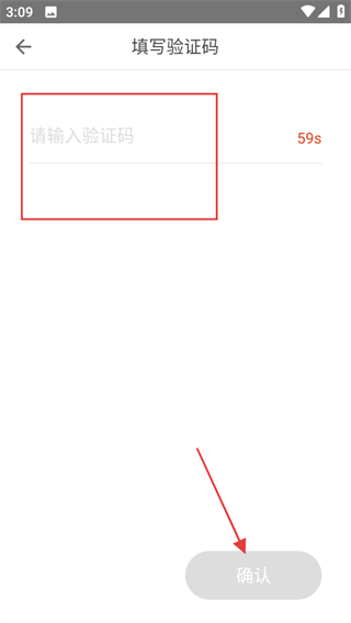 4、在填写验证码页面,输入验证码后点击确认可完成账号注册。