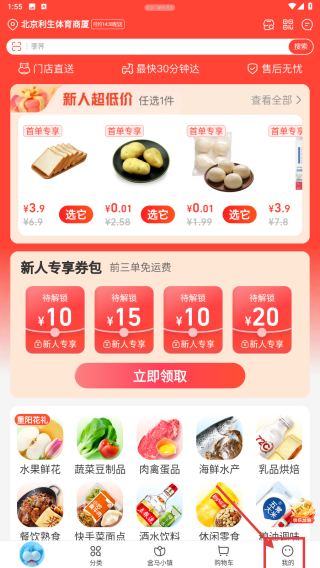 1、打开生鲜电商类应用,点击底部我的选项,进入个人中心页面。