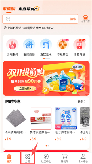 1、打开生活服务类应用,点击底部分类选项,进入分类页面。