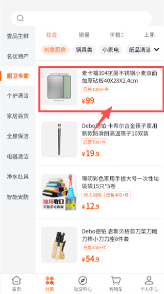 2、在分类页面,点“厨卫专家分类选项,进入厨卫商品列表页面。