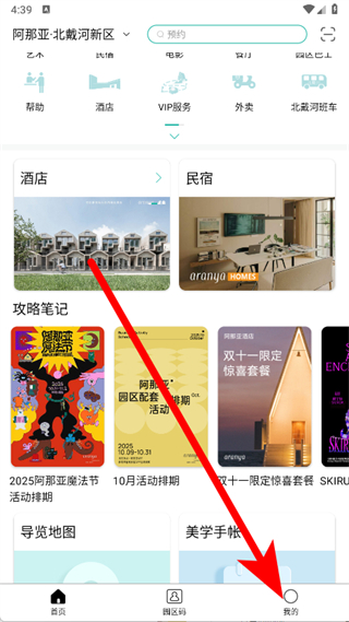 1、打开阿那亚,点击底部导航栏我的,进入个人中心页面。