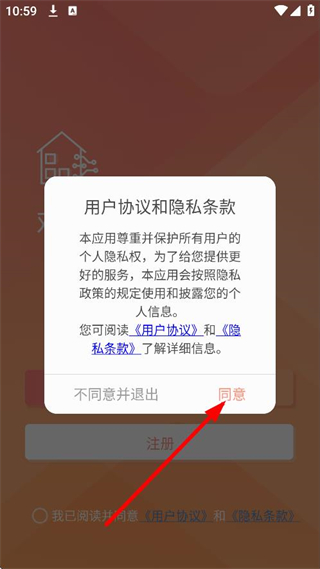 1、在用户协议和隐私条款弹窗中,点击同意,进入页面。