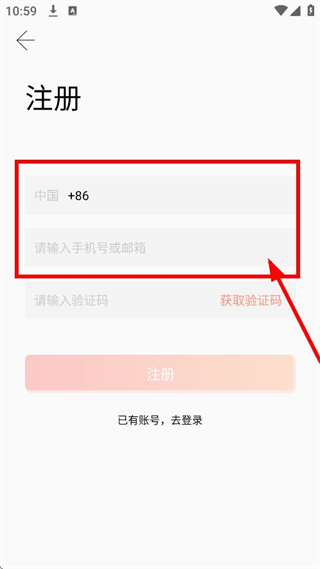 3、随后我们可以在注册页面,输入手机号或邮箱。