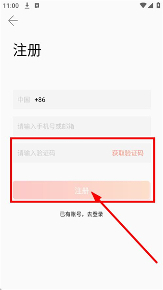 4、点击获取验证码并输入后点击注册,完成账号注册操作。