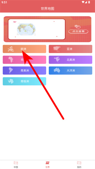 2、在世界地图页面,点击欧洲选项,进入欧洲地图页面。