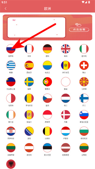 3、在欧洲地图页面,点击俄罗斯选项,进入俄罗斯地图页面。