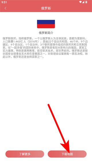 4、在俄罗斯地图页面,点击下载地图按钮,即可进行地图下载操作。