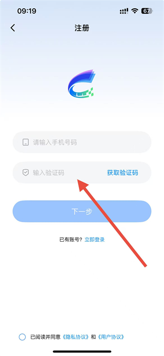 4、在注册页面输入手机号码,获取验证码,勾选同意协议,点击下一步按钮,即可完成温州市民卡账号注册。