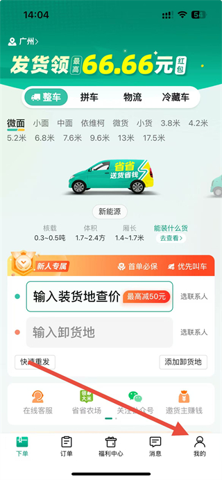 1、打开省省回头车app,在主界面点击右下角我的,进入个人相关界面。