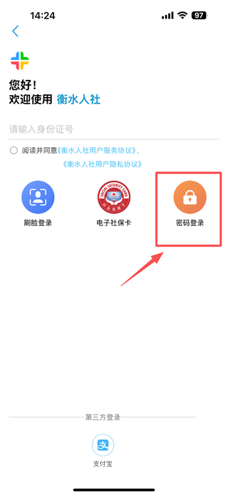 3、在登录页面,点击密码登录选项,进入密码登录页面。
