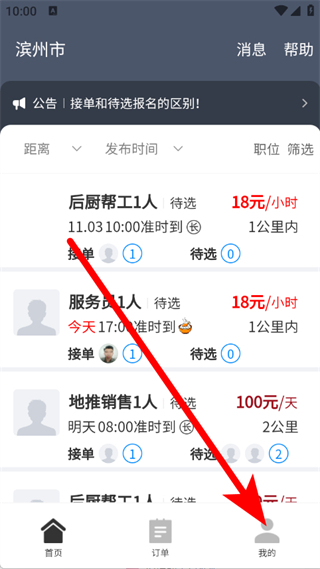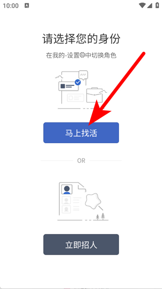 1、打开招急网,选择身份为马上找活,进入主界面。