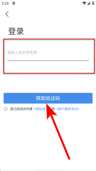 3、输入手机号码,勾选同意相关协议后,点击获取验证码。