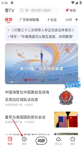 1、打开触电新闻,在首页点击视听,可进入视听相关页面。