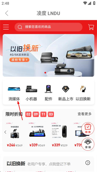 2、在该页面,点击流媒体可进入全屏流媒体商品列表页面。