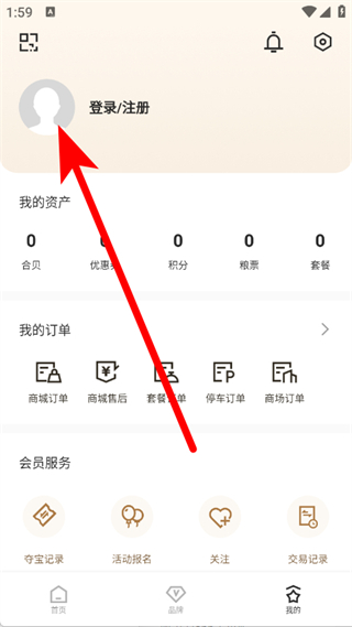 2、在个人页面,点击登录注册区域,进入手机验证码登录页面。