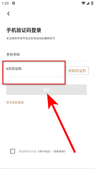 4、输入收到的6位短信验证码,勾选同意后,点击登录按钮,完成账号登录。