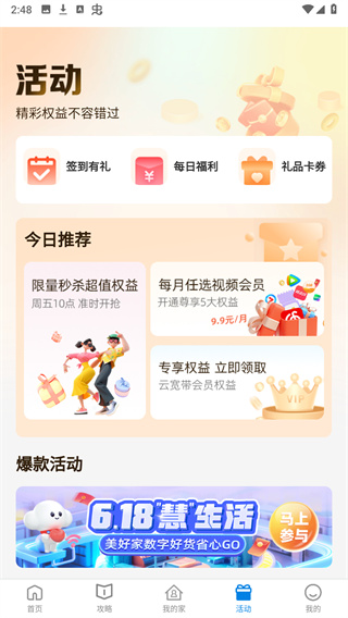 播播宝盒app是专为上海电信用户打造的一站式生活服务软件,集业务办理、购物娱乐、优惠权益于一体,带来便捷高效的生活体验,核心提供电信套餐查询、办理、充值缴费等基础服务,免登录即可快速操作,无需线下奔波,全方位满足上海电信用户的通讯、生活与娱乐需求,是本地生活的实用帮手。