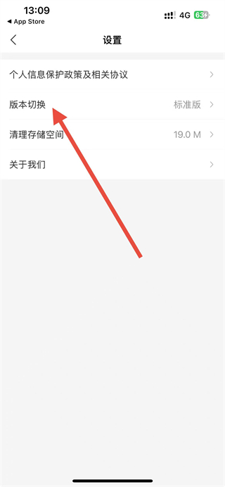 3、进入设置页面后,点击版本切换选项。