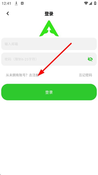 3、在登录页面,点击去注册,进入注册页面。