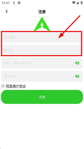 4、随后我们可以在注册页面,输入邮箱与用户名。