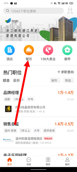 1、打开最佳东方,点击首页餐饮板块,进入餐饮岗位列表。
