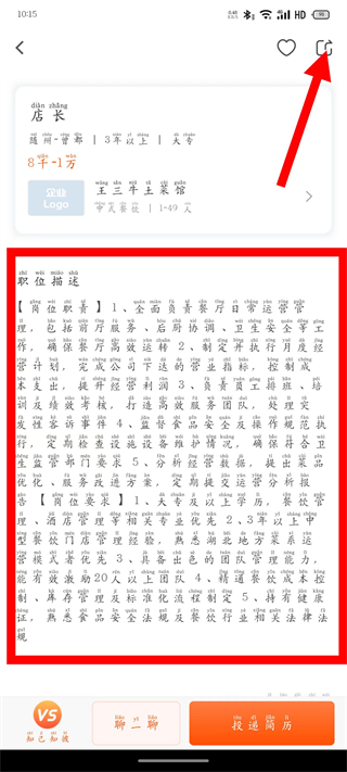 3、在岗位详情页,点击右上角分享图标,弹出分享选项。