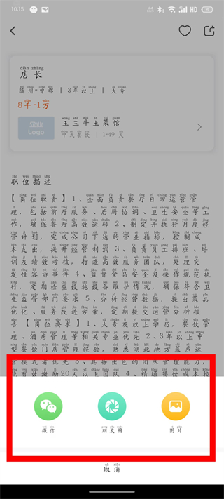 4、选择微信、朋友圈等分享渠道,完成岗位信息分享。