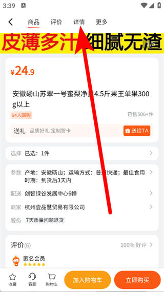 3、点击进入商品页面后,点击详情,查看商品详情信息。