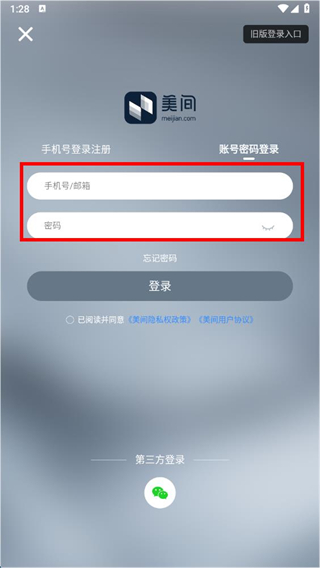 3、在账号密码登录页面,输入手机号邮箱和密码。