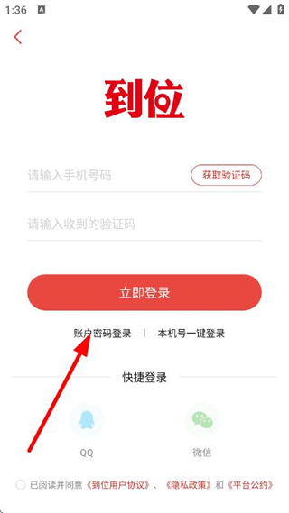 2、在登录页面,点击账户密码登录,进入账号密码登录界面。