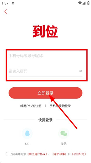 3、输入手机号码或账号昵称、密码,点击登录,完成账号登录操作。
