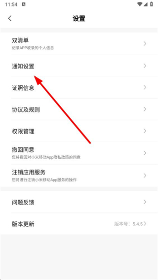 3、进入设置页面后,点击通知设置选项。