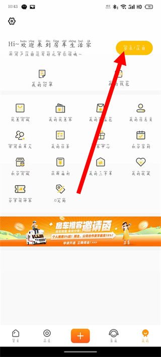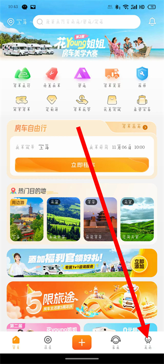 1、打开房车生活家,点击底部导航栏我的,进入个人页面。