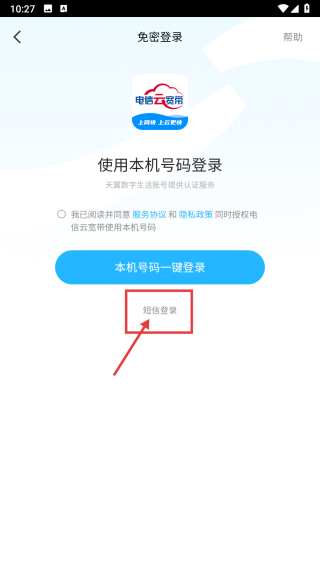 3、在登录方式选择页面,点击短信登录选项,进入短信登录信息填写页面。
