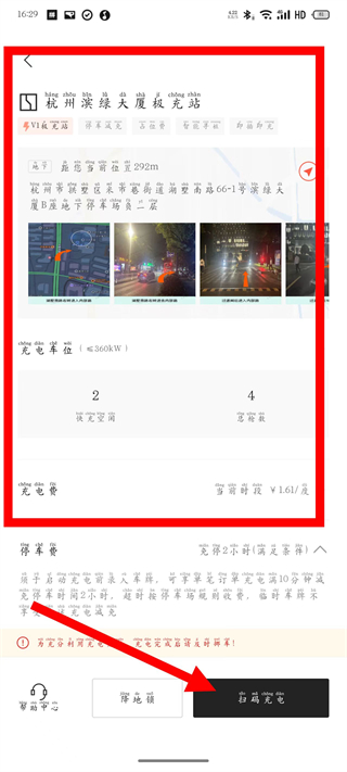4、在充电站详情页,点击扫码充电,即可启动充电操作。