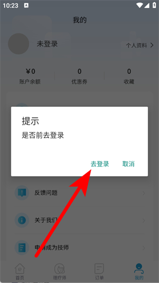 2、在提示弹窗中,点击去登录,进入登录页面。