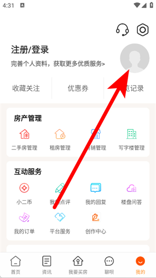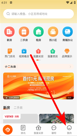 1、打开房小二网,点击底部我的,进入个人中心页面。