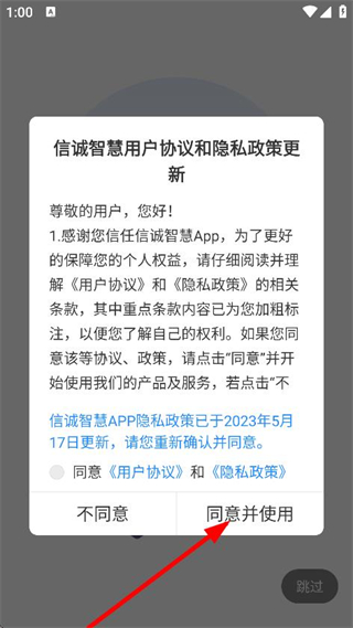 1、在用户协议和隐私政策更新弹窗,点击同意,进入首页。