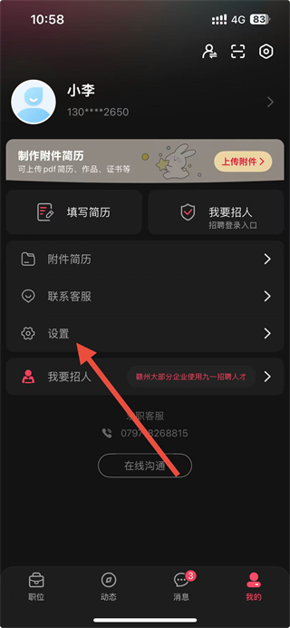1、打开九一人才网APP,点击右下角我的进入个人页面。