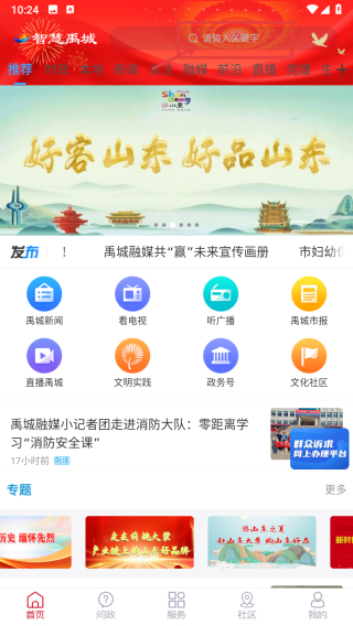 智慧禹城是一款专为禹城本地用户打造的综合服务平台,既是获取本地资讯的窗口,也是享受公共服务的通道,用户通过它能及时了解禹城生活、新闻、教育、政策、医疗等领域动态,为日常出行办事提供便利,同时接入山东卫视闪电客户端,带来移动直播、随手拍等功能,搭配权威首发、个性订阅等特色栏目,让用户尽享便捷多元的移动生活体验。