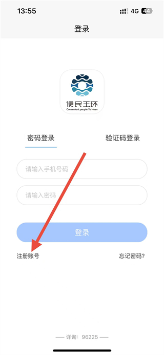 1、打开便民玉环APP,在登录页面点击注册账号选项。