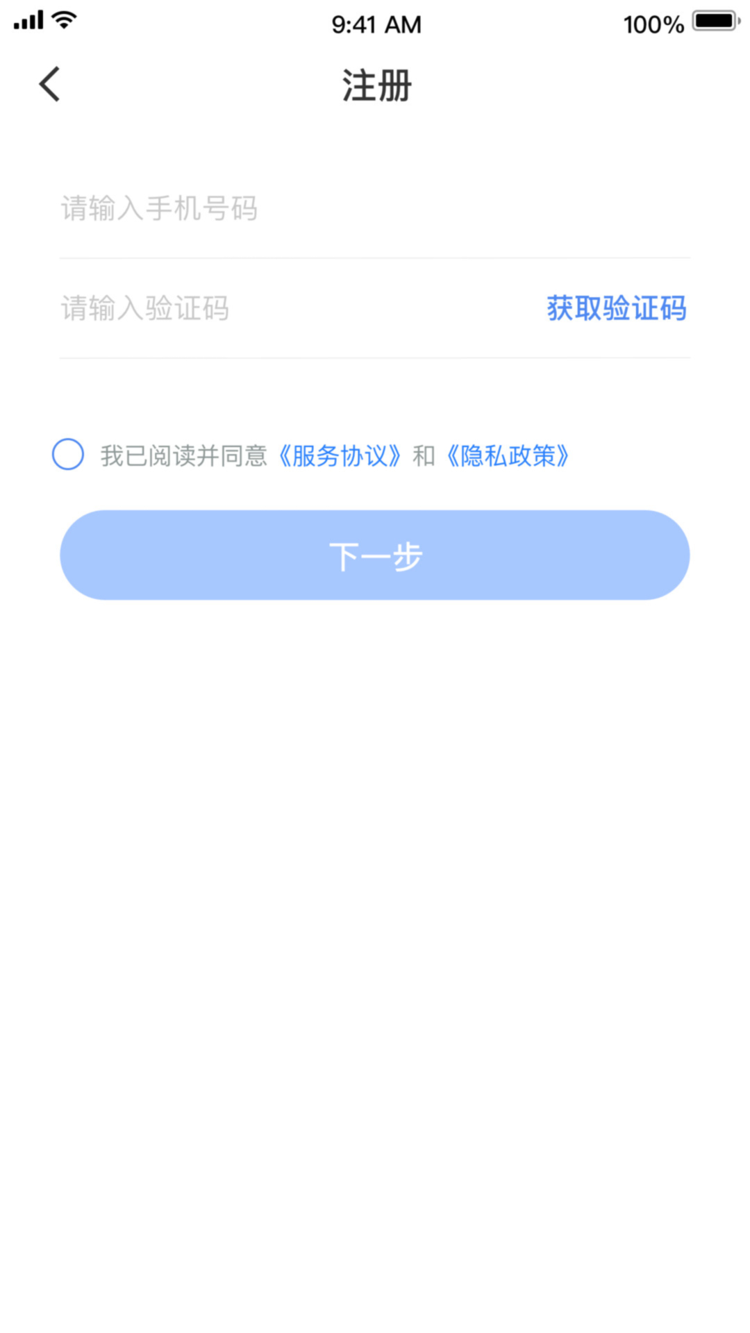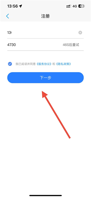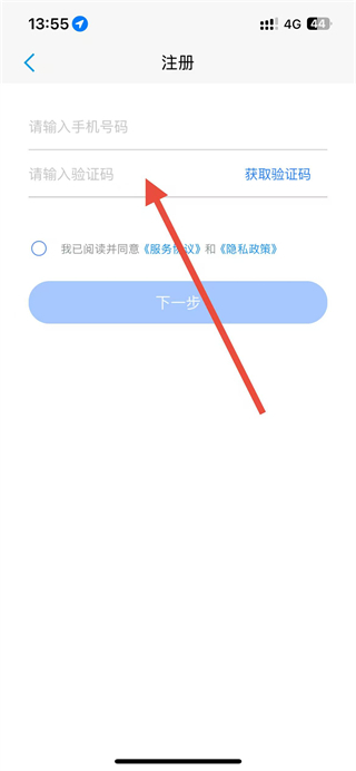 2、进入注册页面后,输入手机号码,点击获取验证码并输入收到的验证码
