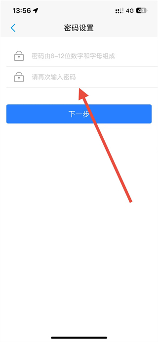 3、在密码设置页面,设置密码并再次确认密码,点击下一步按钮即可完成注册操作。