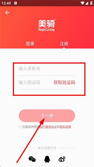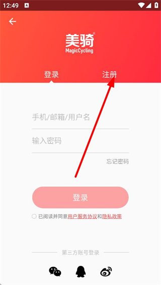 3、在登录注册选择页面,点击注册,进入注册页面。